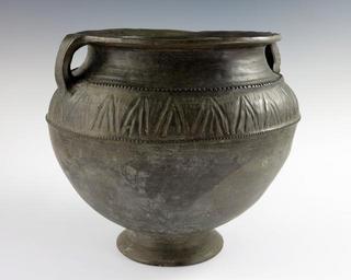 Keywords: State Gifts Etruscan Pot.JPG en A black clay Etruscan Buchero pot with small handles on either side A border around the widest part of the pot is engraved in connected triangles This pot was found in Vulci Italy on February 19 1962 at an excavation It dates to 580/550 B C Gift of President Giovanni Leone of the Republic of Italy 1974 clay 12 H x 10 Dia Institution Gerald R Ford Presidential Museum http //www fordlibrarymuseum gov/museum/ArtifactCollectionSamples/Catagories/StateGifts/ClayPot html Clay Buchero pot accession number 1981 177a credit line Courtesy of the Gerald R Ford Presidential Museum Donation Date September 25 1974 Institution Institution Gerald R Ford Presidential Museum Gerald R Ford Presidential Library and Museum-cooperation PD-USGov Uploaded with UploadWizard Gifts of heads of state in the Gerald R Ford Presidential Museum Etruscan pottery in the United States Relations of Italy and the United States |