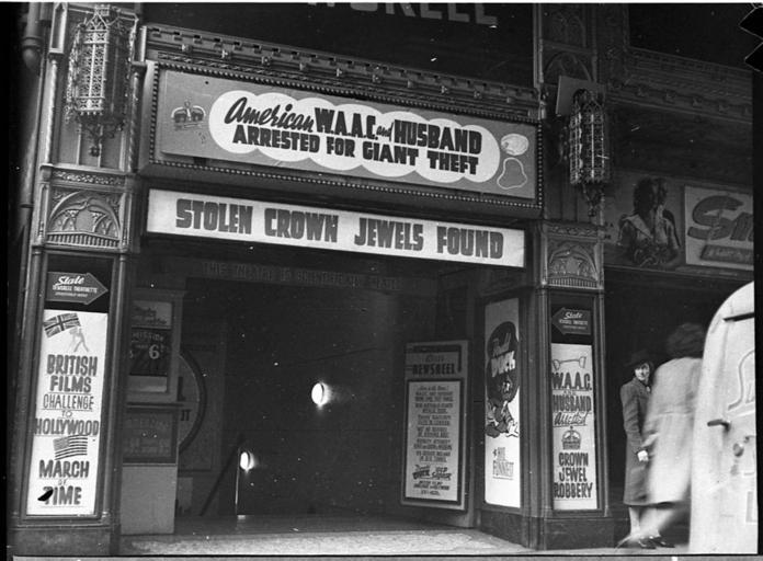 | Keywords: theft crown jewels crownjewels theatrette new south wales newsouthwales nsw australia state newsreel theatrette statenewsreeltheatrette state theatre statetheatre sydney blackandwhite monochrome black and white News: "American W.A.A.C. and husband arrested for giant theft" and "Stolen Crown Jewels found"  Format: Film negative  From the collections of the Mitchell Library, State Library of New South Wales www.sl.nsw.gov.au  Information about photographic collections of the State Library of New South Wales: acms.sl.nsw.gov.au/search/SimpleSearch.aspx  Persistent url: acms.sl.nsw.gov.au/item/itemDetailPaged.aspx?itemID=28702 News: "American W.A.A.C. and husband arrested for giant theft" and "Stolen Crown Jewels found"  Format: Film negative  From the collections of the Mitchell Library, State Library of New South Wales www.sl.nsw.gov.au  Information about photographic collections of the State Library of New South Wales: acms.sl.nsw.gov.au/search/SimpleSearch.aspx  Persistent url: acms.sl.nsw.gov.au/item/itemDetailPaged.aspx?itemID=28702  |