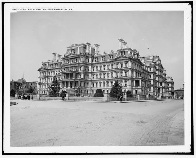 | Keywords: State war navy building 4a09424a.tif photograph en State War and Navy Building Washington D C creator William Henry Jackson 1843-1942 photographer ; Detroit Publishing Co c1902 1 negative glass 8 x 10 in accession number LC-D401-14222 b w film copy neg LC-DIG-det-4a09424 digital file from original Call Number LC-D4-14222 <P P> P P Repository Library of Congress Prints and Photographs Division Washington D C 20540 USA http //hdl loc gov/loc pnp/pp print http //hdl loc gov/loc pnp/det 4a09424 Rights Advisory No known restrictions on publication DC Past http //dcpast com/post/51470417790/1902-state-war-navy-building <gallery> State War and Navy Building 4a09424v jpg jpg </gallery> PD-Detroit Washington D C in the 1900s Eisenhower Executive Office Building William Henry Jackson Uploaded with UploadWizard |