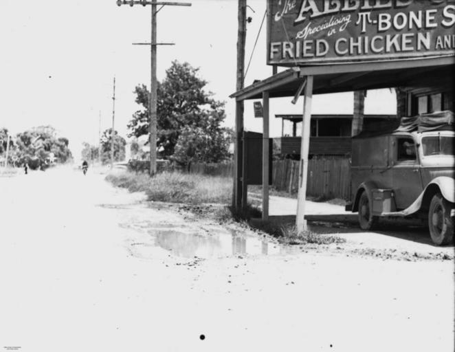 | Keywords: StateLibQld 1 108168 Food shop at Eagle Farm, Brisbane, 1944.jpg en Food shop at Eagle Farm Brisbane 1944 Brisbane food store during World War II The fare is particularly American is style probably catering to the many American servicemen in Brisbane at the time A motor vehicle is parked under the awning of the shop 1944-01-09 handle 10462/deriv/93289 Copied and digitised from an image appearing in Sunday truth 9 January 1944 Unknownp; Contributor s Sunday truth Brisbane Qld PD-Australia StateLibQld-License Eagle Farm Queensland 1944 in Australia Black and white photographs Images from Sunday Truth Cafés in Queensland |