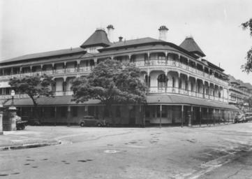 Keywords: StateLibQld 1 112000 Bellevue Hotel, Brisbane, 1940.jpg en Bellevue Hotel Brisbane 1940 <br /> The Bellevue Hotel was erected in 1886 occupying the site on the corner of George and Alice Streets Brisbane Queensland The building was of three storey construction featuring cast iron railing on the wrap around verandahs with posts supporting a curved corrugated iron roof A steep pitched roof shows two mansard roofs with cast iron cresting and chimneys In April 1979 under instruction from Premier Joh Bjelke-Petersen the building was demolished after midnight by local contractors the Deen Brothers who had police protection A crowd of over 700 protestors looked on in horror after failing to save the beautiful old building 1940 handle 10462/deriv/130744 Item is held by John Oxley Library State Library of Queensland PD-Australia StateLibQld-License Bellevue Hotel Brisbane Streets in Brisbane CBD Railings in Queensland Vehicles in Australia 1940 in Brisbane Black and white photographs |