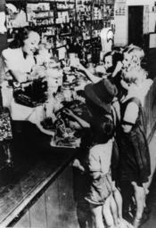 Keywords: StateLibQld 1 117140 Children inside a general store, Ravenswood, Queensland, ca. 1945.jpg en Children inside a general store Ravenswood Queensland ca 1945 Children at the shop counter inside a general store in Ravenswood Shelves behind the counter are filled with groceries and a set of weighing scales are visible on the right of the image This is the Ravenswood General Store and it was owned by the Weinheimer family at the time The woman serving behind the counter is Coralie Jean Weinheimer the owner's daughter Coralie later married and moved to Townsville where she lived the rest of her life circa 1945 handle 10462/deriv/140182 Copied and digitised from an original photograph held by the Cairns Historical Society PD-Australia StateLibQld-License General stores in Queensland Sales counters Children's clothing of Australia Building interiors in Queensland Ravenswood Queensland 1945 in Australia Black and white photographs