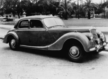 | Keywords: StateLibQld 1 121984 1950 Riley 2 1-2 litre four door saloon.jpg en 1950 Riley 2 1/2 litre four door saloon The Riley 2 1/2 litre RM series saloons combined a sporting drive and comfortable wood-and-leather interior with an elegant but old-fashioned body The body was made using the pre-WW2 technique of steel panels over a wooden frame and the fixed roof was covered in fabric - the payoff being a low centre of gravity for good cornering The 2443cc four cylinder engine while also a pre-war carryover had twin camshafts and developed 90 bhp Riley built their first car in 1898 and became part of William Morris's Nuffield Group in 1938 but remained quite individual in their design This photograph was taken at New Farm Park in Brisbane 1950 handle 10462/deriv/109609 Item is held by John Oxley Library State Library of Queensland Contributor s Queensland Newspapers Pty Ltd PD-Australia StateLibQld-License Automobiles of Australia New Farm Queensland 1950 in Queensland Black and white photographs Riley 2½ RMB saloon 1950 |