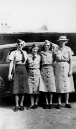 Keywords: StateLibQld 1 123554 Women drivers known as the Four Musketeers, posing in front of their car in Brisbane, ca. 1944.jpg en Women drivers known as the Four Musketeers posing in front of their car in Brisbane ca 1944 Pictured from left Miss Fox Polly Teasdale Midge Ruddle and Thelma Drury The women drove for the Americans during World War II and belonged to an Australian organisation called the Women's National Emergency Legion They were engaged to drive for the United States Army through the Transportation Section 81st Air Depot Group which was based in the Valley Motor Pool and later at Eagle Farm The women chosen were very efficient drivers as they had to drive American left hand drive cars sometimes for long distances They were also responsible for chauffeuring high ranking officers around Brisbane Uniforms consisted of khaki shirt and skirt buttoned down the front with a darker tie tucked into the shirt A khaki forage cap and heavy shoes completed their outfit circa 1944 handle 10462/deriv/3691 Item is held by John Oxley Library State Library of Queensland PD-Australia StateLibQld-License Vehicles in Australia Military uniforms of Australia Military of Australia Women of Australia World War II home front in Brisbane Black and white photographs Women's National Emergency Legion