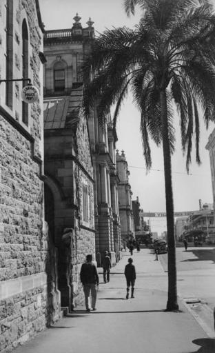 | Keywords: StateLibQld 1 131547 People walking along the footpath outside the police department on George Street, Brisbane, 1940.jpg en People walking along the footpath outside the police department on George Street Brisbane 1940 1940-06-01 handle 10462/deriv/79692 Item is held by John Oxley Library State Library of Queensland PD-Australia StateLibQld-License Arecaceae in Australia Police stations in Queensland George Street Brisbane 1940 in Brisbane Black and white photographs | ||||
