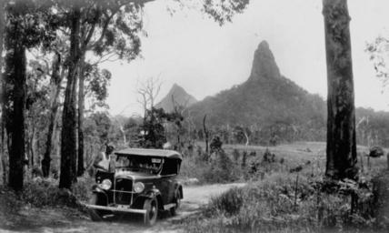 Keywords: StateLibQld 1 132380 Driving through the Glasshouse Mountains District,1935.jpg en Driving through the Glasshouse Mountains District 1935 <br /> The driver of an Austin motor vehicle takes a break whilst travelling through the Glasshouse Mountains area Coonowrin more often called 'Crookneck' and Beerwah the highest of the mountains are in the background 1935 handle 10462/deriv/13016 Item is held by John Oxley Library State Library of Queensland PD-Australia StateLibQld-License Roads in Sunshine Coast Vehicles in Australia Views of Queensland 1935 in Queensland Black and white photographs Austin vehicles Mount Coonowrin |