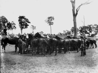 Keywords: StateLibQld 1 138055 Watering the horses at the Enoggera Army Camp, ca 1914.jpg en Watering the horses at the Enoggera Army Camp ca 1914 Poul C Poulsen founder of the Poulsen Studios in Brisbane was born in Denmark in 1857 and arrived in Sydney in 1876 In 1882 he moved to Queensland and was later joined by his sisters and brothers from Denmark He opened his own studio at no 7 Queen Street in 1885 and later opened branches run by his brothers in other Queensland towns Poulsen vigorously advertised constant improvements and modernisation in his studio and in the service he provided His sons and grandson followed in his footsteps circa 1914 handle 10462/deriv/9720 Item is held by John Oxley Library State Library of Queensland Poulsen Poul C 1857-1925 PD-Australia StateLibQld-License Horses of Queensland Military buildings in Australia Tents in Australia Enoggera Queensland 1914 in Queensland Black and white photographs Army camps of Queensland |