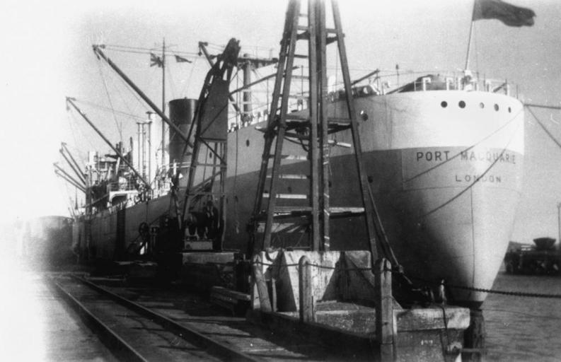 | Keywords: StateLibQld 1 140315 Port MacQuarie (ship).jpg Port Line Commonwealth and Dominion Line 7 319 GRT cargo ship Port MacQuarie built in 1944 by Swan Hunter on Tyneside and scrapped in Taiwan in 1968 handle 10462/deriv/19243 Item is held by John Oxley Library State Library of Queensland MacPherson C W PD-Australia StateLibQld-License Black and white photographs of ships Merchant ships of the United Kingdom Reefer ships Ships built at Swan Hunter Wigham Richardson Wallsend Ships built in 1944 Ships in Queensland Ships scrapped in 1968 DEFAULTSORT Port MacQuarie |
