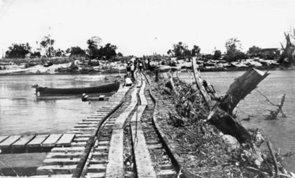Keywords: StateLibQld 1 148475 Flood debris entangled on the railway bridge over the Burdekin River, 1940.jpg en Flood debris entangled on the railway bridge over the Burdekin River 1940 Flood debris including large tree stumps and branches is entangled on the railway bridge over the flooded Burdekin River A few men in a small boat assess the condition of the bridge More debris is littered along the banks of the river A house is visible in the top right of the photograph 1940 handle 10462/deriv/24785 Item is held by John Oxley Library State Library of Queensland PD-Australia StateLibQld-License Burdekin River Railway bridges in Queensland Flood damage in Queensland Boats in Australia 1940 in Queensland Black and white photographs Damaged railway bridges |