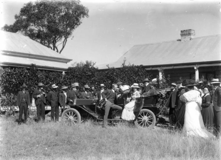 Keywords: StateLibQld 1 154323 People admiring an open top touring car at a Pittsworth property, ca. 1915.jpg en People admiring an open top touring car at a Pittsworth property ca 1915 Social gathering at a Pittsworth property possibly a wedding circa 1915 handle 10462/deriv/116956 Item is held by John Oxley Library State Library of Queensland PD-Australia StateLibQld-License Men's clothing of Australia Corrugated iron Women's clothing of Australia Headgear of Australia People with hats Wedding ceremonies in Australia 1910s in Australian society Black and white photographs |