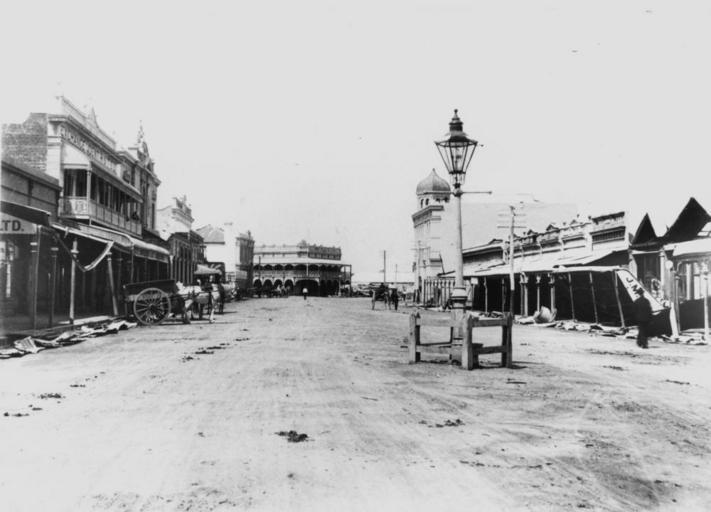Keywords: StateLibQld 1 189503 Flinders Street, Townsville, after Cyclone 'Leonta', 1903.jpg en Flinders Street Townsville after Cyclone 'Leonta' 1903 Cyclone 'Leonta' struck Townsville on March 9th 1903 This image shows the damaged buildings in Flinders Street including the Exchange Hotel on the left A streetlight appears in the foreground 1903 handle 10462/deriv/137264 Item is held by John Oxley Library State Library of Queensland PD-Australia StateLibQld-License Streets in Townsville Hotels and pubs in Townsville Street lights in Queensland Black and white photographs Lamp posts in Australia Cyclone Leonta 1903 Cyclone damage Townsville |