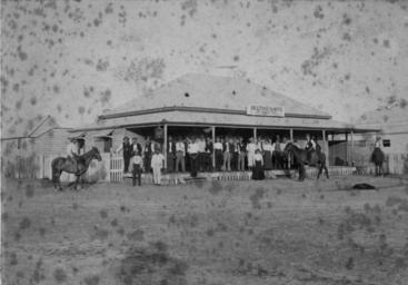 Keywords: StateLibQld 1 190143 Biggenden Hotel, Biggenden, 1901.jpg en Biggenden Hotel Biggenden 1901 Locals gather on the verandah in front of the Biggenden Hotel a timbered walkway leads to a detached kitchen to the far left of the photograph 1901 handle 10462/deriv/113221 Item is held by John Oxley Library State Library of Queensland PD-Australia StateLibQld-License Black and white photographs Hotels and pubs in Biggenden |