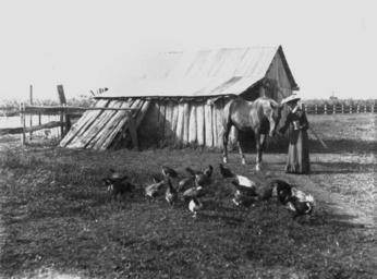 | Keywords: StateLibQld 1 208185 Woman feeding a horse at South Kolan, Bundaberg, 1904-1906.jpg en Woman feeding a horse at South Kolan Bundaberg 1904-1906 The woman and horse stand in front of a stable constructed from timber slabs with a corrugated iron roof Some chickens are feeding nearby between 1904 1906 handle 10462/deriv/130696 Item is held by John Oxley Library State Library of Queensland PD-Australia StateLibQld-License Farm buildings in Australia Chickens of Australia Horses of Queensland Farms in Queensland Women's clothing of Australia Buildings in Bundaberg 1904 in Australia Black and white photographs Stables in Queensland |