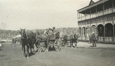 Keywords: StateLibQld 1 240650 Outside the Lake Eacham Hotel in a wagon.jpg en Outside the Lake Eacham Hotel in a wagon <br /> Party leaving Yungaburra for Lake Barrine This photograph is part of a collection which records the Commissioner's inspection of the North Queensland railways 1912-07-01 handle 10462/deriv/127448 Item is held by John Oxley Library State Library of Queensland PD-Australia StateLibQld-License Horse-drawn vehicles in Australia Men's clothing of Australia Roads in Far North Queensland 1912 in Australia Black and white photographs Eacham Queensland Lake Eacham Hotel Commissioner's inspection tour of North Queensland 1912 |