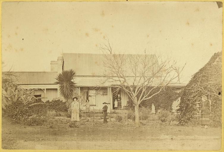 | Keywords: StateLibQld 1 247774 Gardening at the front of Aloe Villa, Toowoomba.jpg en Gardening at the front of Aloe Villa Toowoomba Lady of the house pictured in the doorway of Aloe Villa other family members standing in the garden Many exotic plantings in the front garden Aloe Villa is a gable-roofed cottage with a front verandah and an elongated wing to the left of the photograph 1884 handle 10462/deriv/35978 Item is held by John Oxley Library State Library of Queensland PD-Australia StateLibQld-License Cactus collections Children's clothing of Australia Families of Australia 1884 in Queensland Girls of Australia Corrugated iron Women's clothing of Australia Houses in Toowoomba Black and white photographs |