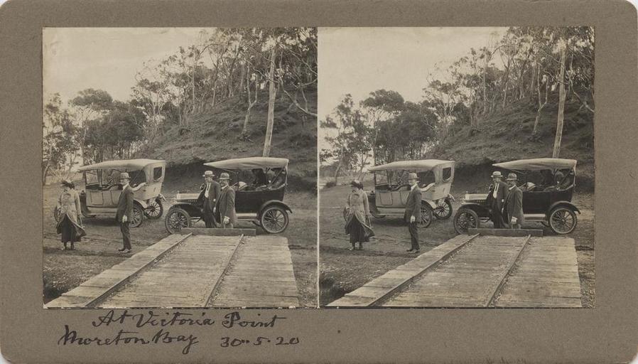 | Keywords: StateLibQld 1 251701 Day out at Victoria Point, 1920.jpg  en Day out at Victoria Point 1920 Two motor vehicles and their occupants are pictured at Victoria Point A timber structure with rail lines is in the foreground Victoria Point is on Moreton Bay in the Redland Shire 1920-05-30 handle 10462/deriv/120644 Item is held by John Oxley Library State Library of Queensland Shale John F PD-Australia StateLibQld-License Vehicles in Australia Railway lines in Australia 1920 in Australia Men's clothing of Australia Women's clothing of Australia Stereo cards of Australia Victoria Point Queensland Black and white photographs |