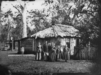 | Keywords: StateLibQld 1 88100 Sherrin family pictured outside their home at Cleveland, ca. 1871.jpg en Sherrin family pictured outside their home at Cleveland ca 1871 John and Elizabeth Sherrin and their family are standing in the garden outside their home The house is constructed of timber with a bark roof circa 1871 handle 10462/deriv/64137 Item is held by John Oxley Library State Library of Queensland Boag William 1838 -1878 PD-Australia StateLibQld-License Houses in Brisbane Bark roofs Families of Australia Women's clothing of Australia Men's clothing of Australia Children's clothing of Australia Buildings in Cleveland Queensland Black and white photographs |