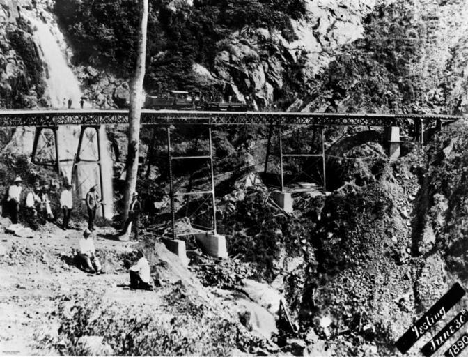 Keywords: StateLibQld 2 109096 Testing the Stony Creek Bridge, Cairns District, 1890.jpg en Testing the Stony Creek Bridge Cairns District 1890 <br /> The locomotive used to test the bridge was named 'Pioneer' and was one of two construction engines ordered by J A Overend from the Baldwin Locomotive Works of Philadelphia the two being shipped from the USA July 1879 to Brisbane 'Pioneer' was used on Overend's contract for construction of Section 1 of the Bundaberg Railway In November 1881 it is recorded as being used by contractor Bashford on construction of the Sandgate line then back to Bundaberg in 1883 In 1885 it was working on the Western Railway construction between Roma and Mitchell where this photo was taken this statement is in conflict with the picture's subject matter -- and the file's title -- which depicts the Stony Creek Falls bridge on the Cairns to Kuranda railway John Robb used it for his contract on the Cairns Range It was then used by contractors McKenzie Sutherland for construction of the third section of the Cairns Railway after which it was sold to the Chillagoe Mines and Railway Company and used on the construction of the Chillagoe Railway from Mareeba It remained a unit of the Chillagoe Company's fleet of locomotives until 1919 when it was taken over by the Queensland Railways who numbered it 52 and classed it B14 being used for shunting at Townsville It was withdrawn from service in August 1927 1890-06-30 handle 10462/deriv/129483 Copied and digitised from an original postcard PD-Australia StateLibQld-License Images of postcards from the State Library of Queensland Bridge construction in Australia Rail transport in Queensland Railway bridges in Queensland 19th-century photographs of Queensland Locomotives of Queensland Waterfalls in Queensland Kuranda Scenic Railway Baldwin locomotives 1890 in Queensland |