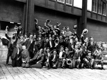 Keywords: StateLibQld 2 124420 Welsh immigrants outside the Queensland Tourist Office Sydney, New South Wales, 1926.jpg en Welsh immigrants outside the Queensland Tourist Office Sydney New South Wales 1926 New arrivals from Great Britain pictured in front of the Queensland Tourist Office in Sydney in 1926 ' We were a mixture of English Scotch and Welsh The ship was the Hobsons Bay which had sister ships Jervis Bay Esperence Bay and Largs Bay owned by the Commonwealth Line We left England on the 3rd August 1926 and arrived at Freemantle on the 20th September 1926 Our destination was Brisbane but oweing to a bad list to port caused by shifting cargo we were put ashore in Sydney From there we entrained to Brisbane and the immigration depot at Kangaroo Point Place of departure in England was Tilibory Docks London Fare from England was 34 Pounds We were all sent to various farms in the State of Qld we received 10 shillings per week of which part was kept by the immigration office to repay part of fare ' Personal comments from Mr E Gardner in photograph first row 6th from the right 1926 handle 10462/deriv/1498 Item is held by John Oxley Library State Library of Queensland PD-Australia StateLibQld-License Multiculturalism in Australia Men's clothing of Australia Black and white photographs Immigration in Australia 1926 in Queensland Immigration |