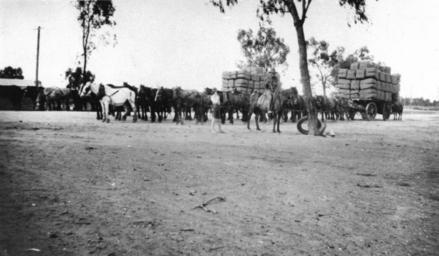 | Keywords: StateLibQld 2 14582 Wool loaded on wagons in the Thallon railway yards, Queensland, 1920.jpg en Wool loaded on wagons in the Thallon railway yards Queensland 1920 Thollon railway station on the Darling Downs east of Dirranbandi distributed grain wool and freight to the surrounding areas 1920 handle 10462/deriv/146736 Item is held by John Oxley Library State Library of Queensland PD-Australia StateLibQld-License Wool production in Australia Black and white photographs Wagons in Australia Thallon Queensland 1920 in Queensland Horse teams Rail yards in Queensland |