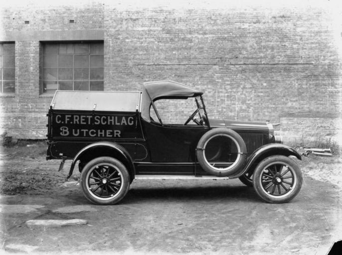 | Keywords: StateLibQld 2 189759 Gray light truck with meat delivery body, Brisbane, 1925 model.jpg en Gray light truck with meat delivery body Brisbane 1925 model American Gray light truck fitted with a special locally-made body for meat delivery for butcher C F Retschlag The load area is probably insulated to be kept cool by ice and keep the meat in good condition while it is being delivered These Gray cars were built in Detroit by former employees of Ford and had many similarities to Ford cars including the 2 7 litre side-valve four cylinder engine Balloon tyres but no front wheel brakes show it is a 1925 model Gray cars and trucks were sold through Canada Cycle and Motor Agency Limited in Creek St Brisbane 1925 handle 10462/deriv/135563 Item is held by John Oxley Library State Library of Queensland PD-Australia StateLibQld-License Delivery trucks in Australia Black and white photographs Vehicles in Brisbane 1925 in Brisbane Motor vehicles Butchers vehicles 1925 photographs |
