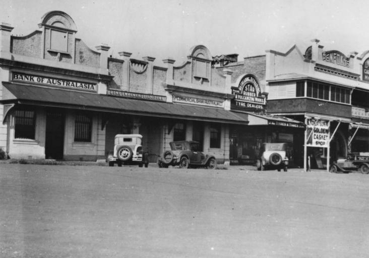 Keywords: StateLibQld 2 206013 Commercial establishments in King Street, Kingaroy, 1935.jpg en Commercial establishments in King Street Kingaroy 1935 Motor vehicles are angle parked in front of the building housing the Bank of Australasia Bond and Wagner Solicitors and the Commercial Bank of Australia Next door is the Star Rubber tyre dealer and the Carrollee Hotel is on the far right with a Penfold sign above the awning on the building 1935 handle 10462/deriv/128295 Item is held by John Oxley Library State Library of Queensland PD-Australia StateLibQld-License Black and white photographs Vehicles in Australia Advertising signs in Queensland 1935 in Queensland Motor vehicles Streets in Kingaroy Buildings in Kingaroy |