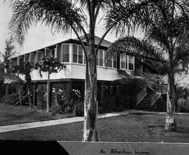 | Keywords: StateLibQld 2 207629 Queenslander home set in a tropical garden at Atherton, Queensland, 1929.jpg en Queenslander home set in a tropical garden at Atherton Queensland 1929 This highset house in Atherton has enclosed verandahs approached from the front by divided stairs The windows on the verandah are open to catch the cool breezes 1929 handle 10462/deriv/131663 Copied and digitised from an image appearing in The Queenslander 12 December 1929 Contributor s The Queenslander PD-Australia StateLibQld-License Black and white photographs Queenslanders verandas Arecaceae in Australia Arecaceae historical images Images from The Queenslander Houses in Atherton Gardens in Queensland 1929 in Queensland |