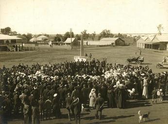 | Keywords: StateLibQld 2 239351 Crowds attending a recruiting rally in Dalby during the First World War, ca. 1915.jpg en Crowds attending a recruiting rally in Dalby during the First World War ca 1915 Army officers stand in front of the town's cenotaph while townspeople look on Women and children are in the crowd including a small child in a vintage parambulator at front right of the photograph between 1914 1918 handle 10462/deriv/122974 Item is held by John Oxley Library State Library of Queensland PD-Australia StateLibQld-License Children's clothing of Australia Military uniforms of Australia Military officers of Australia Women's clothing of Australia Black and white photographs Australia in World War I Children of Queensland Soldiers of Australia Crowds in Australia Dalby Queensland 1914 in Queensland Baby carriers |