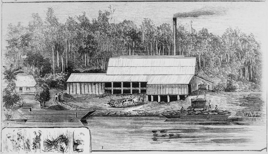 | Keywords: StateLibQld 2 389933 Abbotsford Sugar Mill, Tumbulgum, 1881.jpg en Abbotsford Sugar Mill Tumbulgum 1881 Wood engraving of Abbotsford Sugar Mill showing the mill on the bank of the Tweed River with thick bushland behind 1881 handle 10462/deriv/193034 Item is held by John Oxley Library State Library of Queensland Contributor s Australian town and country journal PD-Australia StateLibQld-License Black and white photographs Tumbulgum New South Wales Sugar mills in Australia 1881 in New South Wales Sugar factories |