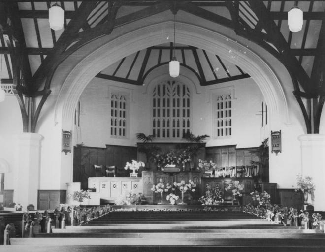 | Keywords: StateLibQld 2 391225 Inside the Methodist Church, Bundaberg, 1937.jpg  en Inside the Methodist Church Bundaberg 1937 Christ Church Church of England The first Anglican church was built in Quay Street in 1876 In 1899 the church was shifted to Woongarra Street near the present site The present church was completed in 1927 The church was built in an English gothic style with the characteristic features of pointed arches bell tower and 34 metre spire tower The stone walls surrounding the grounds the lichgate and the wayside cross are in keeping with old English custom 1937 handle 10462/deriv/192216 Item is held by John Oxley Library State Library of Queensland PD-Australia StateLibQld-License Building interiors in Queensland Black and white photographs Churches in Bundaberg Altars in Queensland 1937 in Queensland Church benches |