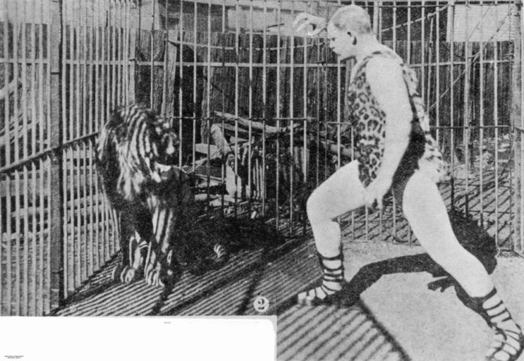 | Keywords: StateLibQld 2 42191 Herr Pagel ready to tackle the lion at Wirth's Circus, Brisbane, 1903.jpg en Herr Pagel ready to tackle the lion at Wirth's Circus Brisbane 1903 The trainer dressed in leopard skin outfit lunges at the lion Cages are visible in the background 1903 handle 10462/deriv/142549 The Queenslander 30 May 1903 p 30 Contributor s Queenslander PD-Australia StateLibQld-License Black and white photographs Circus in Australia Performing animals 1903 in Australia Animal trainers 1903 in Brisbane Lions in circus Lions behind wire netting Black and white photographs of lions Lion tamers Animal cages |