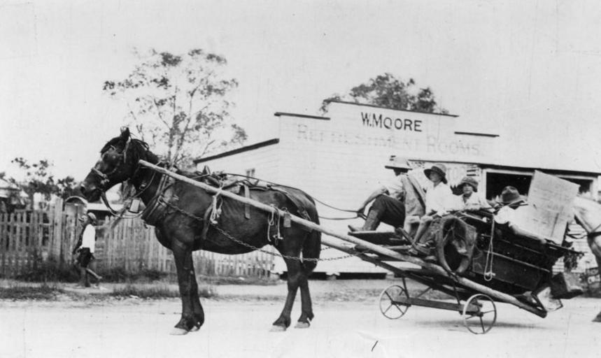 Keywords: StateLibQld 2 82959 Horse and cart with a load of children, Wynnum, ca. 1920.jpg en Horse and cart with a load of children Wynnum ca 1920 The horse and cart is pictured in front of refreshment rooms owned by W Moore at Wynnum Beach circa 1920 handle 10462/deriv/143540 Copied and digitised from a Kodak postcard PD-Australia StateLibQld-License Images of postcards from the State Library of Queensland Horse-drawn carts in Queensland Black and white photographs Restaurants in Australia Children of Queensland Fences in Australia Wynnum Queensland Horses of Brisbane |