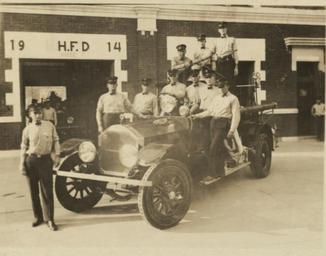 Keywords: Station 14 FIrefighters Houston TX 1920s.jpg en Group photo of Station 14 firefighters on fire engine This photograph was taken at Station 14 locate at 12th and Heights http //digital lib uh edu/u /p15195coll32 92 University of Houston Digital Library s 1920 This image is in the public domain and may be used freely If publishing in print electronically or on a website please use the citation Courtesy of Special Collections University of Houston Libraries To order a higher resolution reproduction see http //info lib uh edu/about/campus-libraries-collections/special-collections-archives/request-digital University of Houston Libraries Houston in the 1920s Fire stations in Houston Firefighting equipment Firefighting clothing |