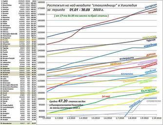 | Keywords: Statistics Wikipedia 30.09.2010.jpg en Statistics_Wikipedia_30 09 2010 bg Класи ане на най-бъ зо аз астващите се азноезични Уикипедии за месец септемв и 2010 г Г афика на на астване на най-младите стохилядници за пе иода януа и - септемв и 2010 г own Stanqo Wikipedia statistics by language |