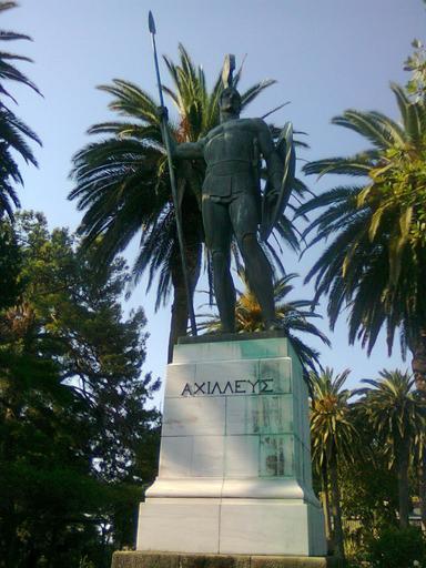 Keywords: statue sculpture bronze landmark monument tourism historic warrior spear korfu achilles