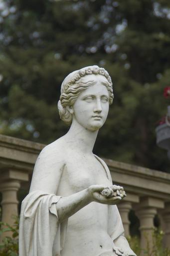 Keywords: statue woman stone white lady girl sculpture old historically gentlewoman young floral wreath flowers goddess