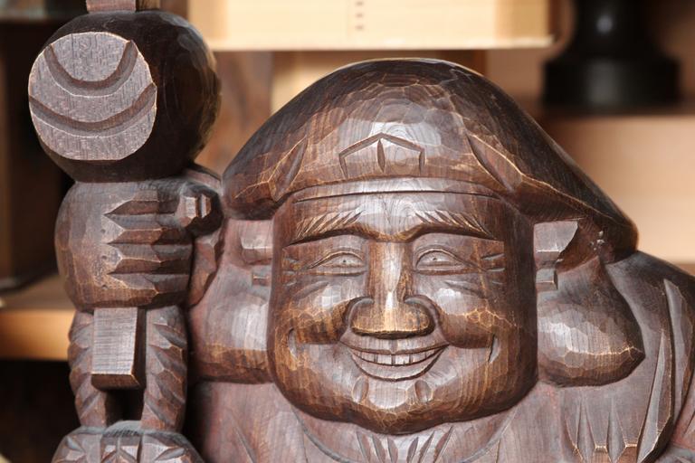 Keywords: statue wood japan fujiyama wood statue smile asia