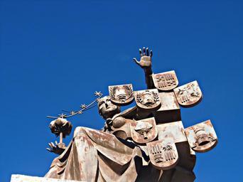 Keywords: statue wrought iron women shields sky outdoors teruel symbolism artistic monument