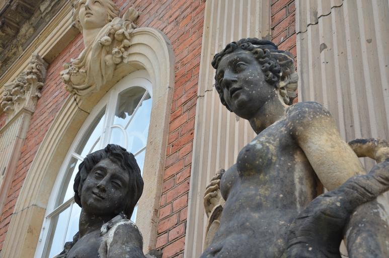 Keywords: statues sculpture stone figures architecture historically potsdam castle facade sanssouci germany fig imposing
