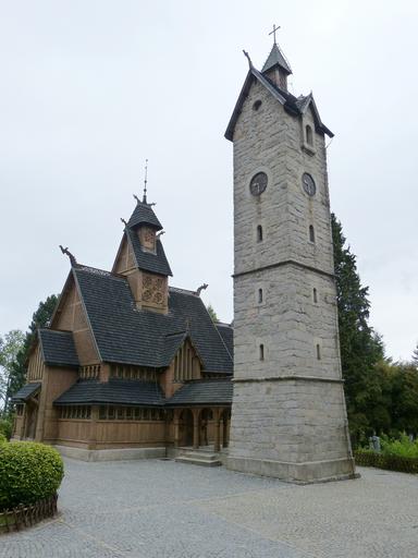 Keywords: stave church architecture church building impressive famous wooden church poland wang giant mountains tower steeple
