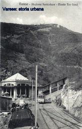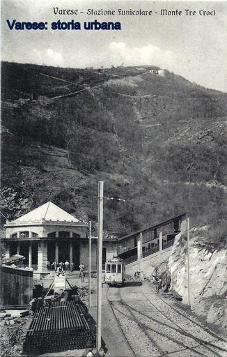 Keywords: varese funicolare tram outdoor Immagine della stazione della funicolare di Vellone. A destra la linea per Santa Maria del Monte (aperta nel 1909) con una vettura in attesa di partire. Dietro la stazione sono visibili i lavori in corso per la costruzione della linea per il Campo dei Fiori (inaugurata nel 1911) e un deposito di materiale edile del cantiere. La cima del Campo dei Fiori è ancora priva della massiccia sagoma dell'hotel (aperto nel 1912). In primo piano il tram per Varese. Immagine della stazione della funicolare di Vellone. A destra la linea per Santa Maria del Monte (aperta nel 1909) con una vettura in attesa di partire. Dietro la stazione sono visibili i lavori in corso per la costruzione della linea per il Campo dei Fiori (inaugurata nel 1911) e un deposito di materiale edile del cantiere. La cima del Campo dei Fiori è ancora priva della massiccia sagoma dell'hotel (aperto nel 1912). In primo piano il tram per Varese. |