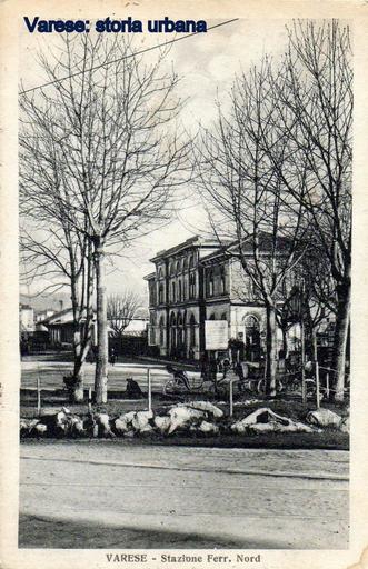 Keywords: Nel piazzale della stazione (1885) stazionano le carrozze in attesa dei viaggiatori. varese