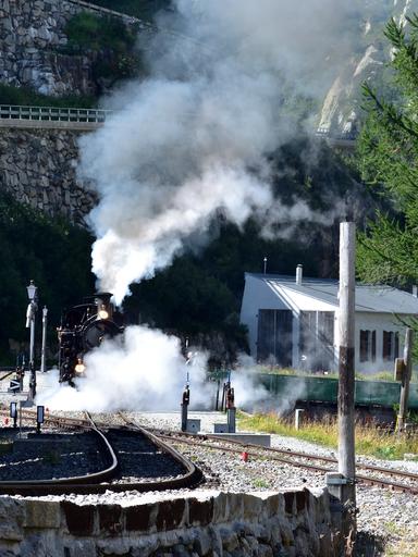 Keywords: steam railway furka-bergstrecke gletsch furka pass valais switzerland steam locomotive alpine historically