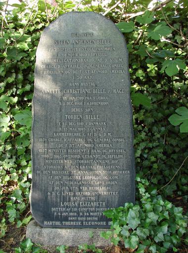 | Keywords: Steen Andersen Bille (Geheimelegationsraad).JPG Geheimelegationsraad Steen Andersen Bille 1781 i Stege - 1860 i Bryssel Arnette Christiane Bille født Hage 1789 på St Croix - 1868 i Kjøbenhavn Torben Bille 1819 i Danmark - 1883 i Cannes m fl gravminde Holmens Kirkegård København own 2011-07 Orf3us PD-old Holmens Kirkegård |