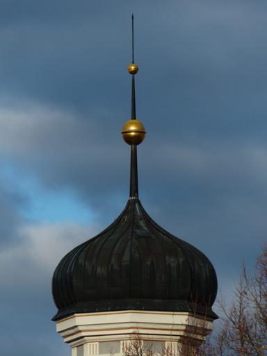 Keywords: steeple ulm holy trinity church spire onion dome church sky clouds cloud mountains white blue tower turrets onion helm great roof faith christianity building