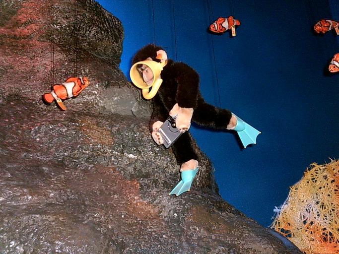 Keywords: Steiffaffe.jpg Präsentation im Steiffmuseum selbst fotografiert Sommer 2005 --Xocolatl 12 08 10 April 2006 UTC 2006-04-10 own assumed Xocolatl Stuffed monkeys Steiff Museum Giengen an der Brenz