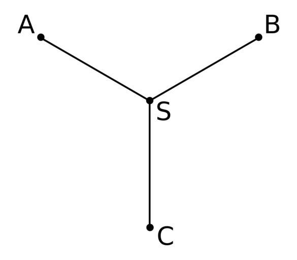Keywords: Steiner 3 points.svg A graph of the solution of the Steiner problem for 3 points in the Euclidean plane Own 2007-03-02 User Bryan Derksen Image Steiner3pts jpg inkscape Claw graph Euclidean geometry