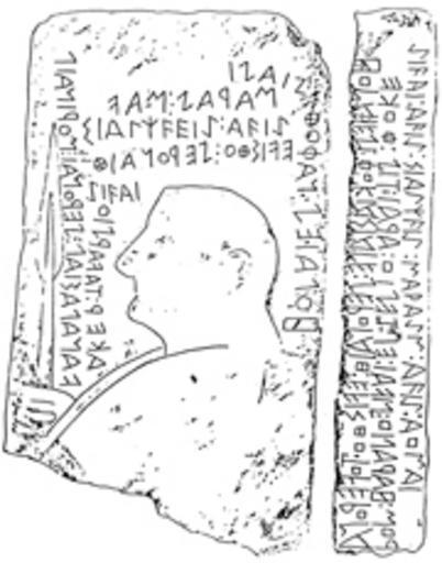 Keywords: Stele.jpg Stele from Kaminia Lemnos ca 510 BC Η Στήλη της Λήμνου facsimile Εθνικό Αρχαιολογικό ουσείο own 2008-04-26 N Steensma Lemnos stele Athens