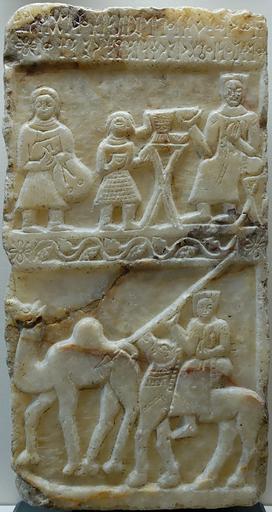 | Keywords: Stele Iglum Louvre AO1029.jpg  Artwork Funerary stele; upper band banquet scene with three people; lower band camel driver with two camels Sabaean inscription Image and funerary monument of `Iglum son of Sa`adīllāt of Qaryot May Eastern `Athtar smite whoever would destroy it Alabaster 1st-3rd centuries AD From Southern Arabia H 55 cm 21 ½ in W 29 cm 11 ¼ in D 8 cm 3 in Museum Louvre Department of Oriental Antiquities Sully wing ground floor room 19 object history credit line Purchase 1883 accession number AO 1029 Jastrow 2007 other versions Stèle funéraire ; registre supérieur scène de banquet avec trois personnes ; registre inférieur chamelier et deux chameaux Inscription en dialecte sabéen « Image et monument funéraire d'`Iglum fils de Sa`adîllât de Qaryot Qu'`Athtar l'Oriental frappe celui qui le détruirait » Albâtre Ier-IIIe siècles ap J -C Provenance Arabie du Sud Sabaean inscriptions Reliefs of camels Ancient Near East steles Near Eastern Antiquities in the Louvre - Room 19 |