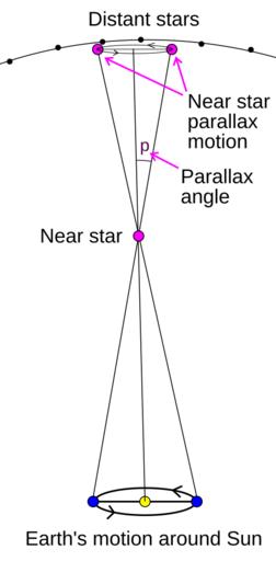 MAKE A MEME View Large Image Stellarparallax2.svg Stellar Parallax diagram The apparent motion of a near by star is a small ellipse in the sky relative to background stars over the period of a year The angle representing major axis radius of the elliptical path is the ...